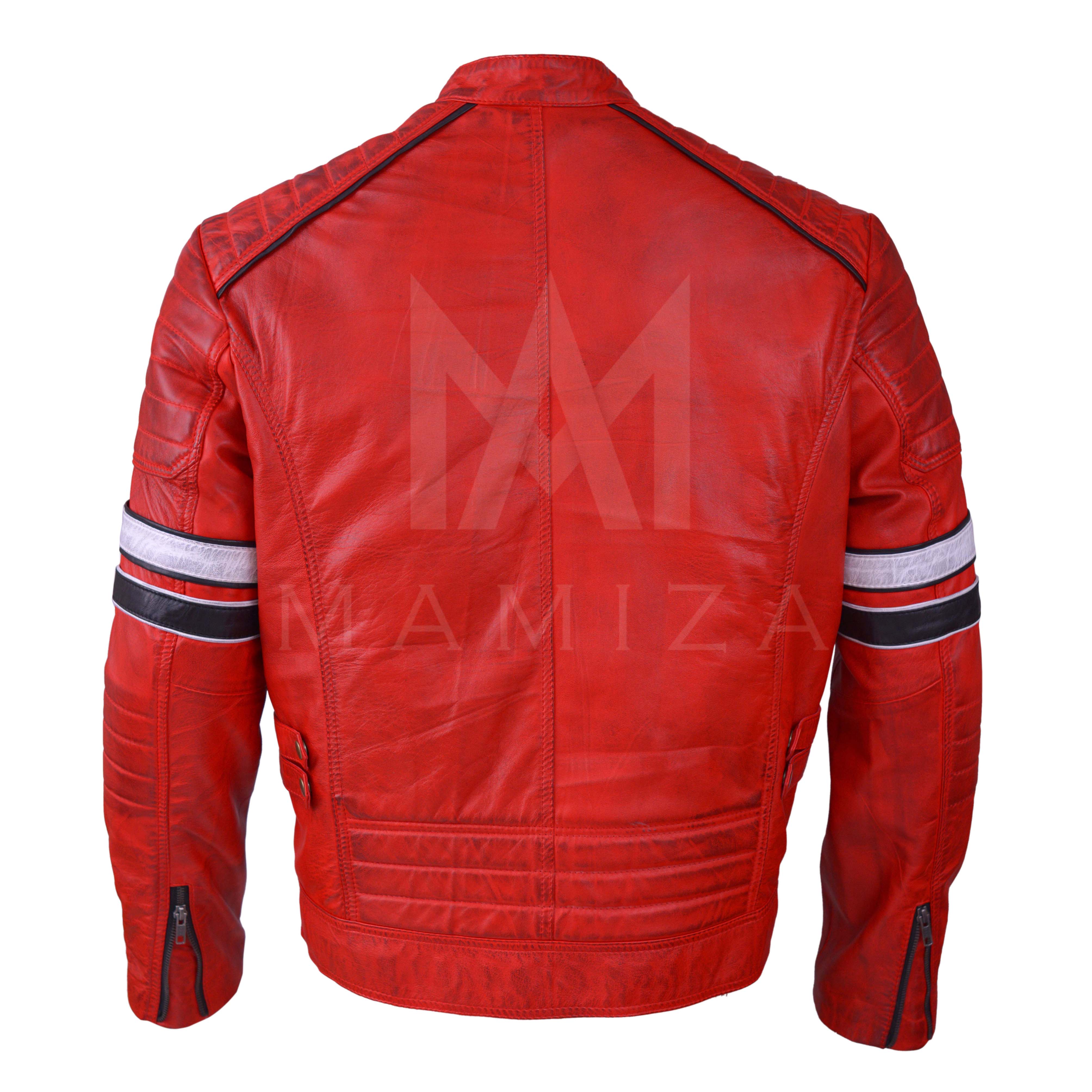 Upgrade your wardrobe today with the Men's Red Leather Biker Jacket and ride in style!
