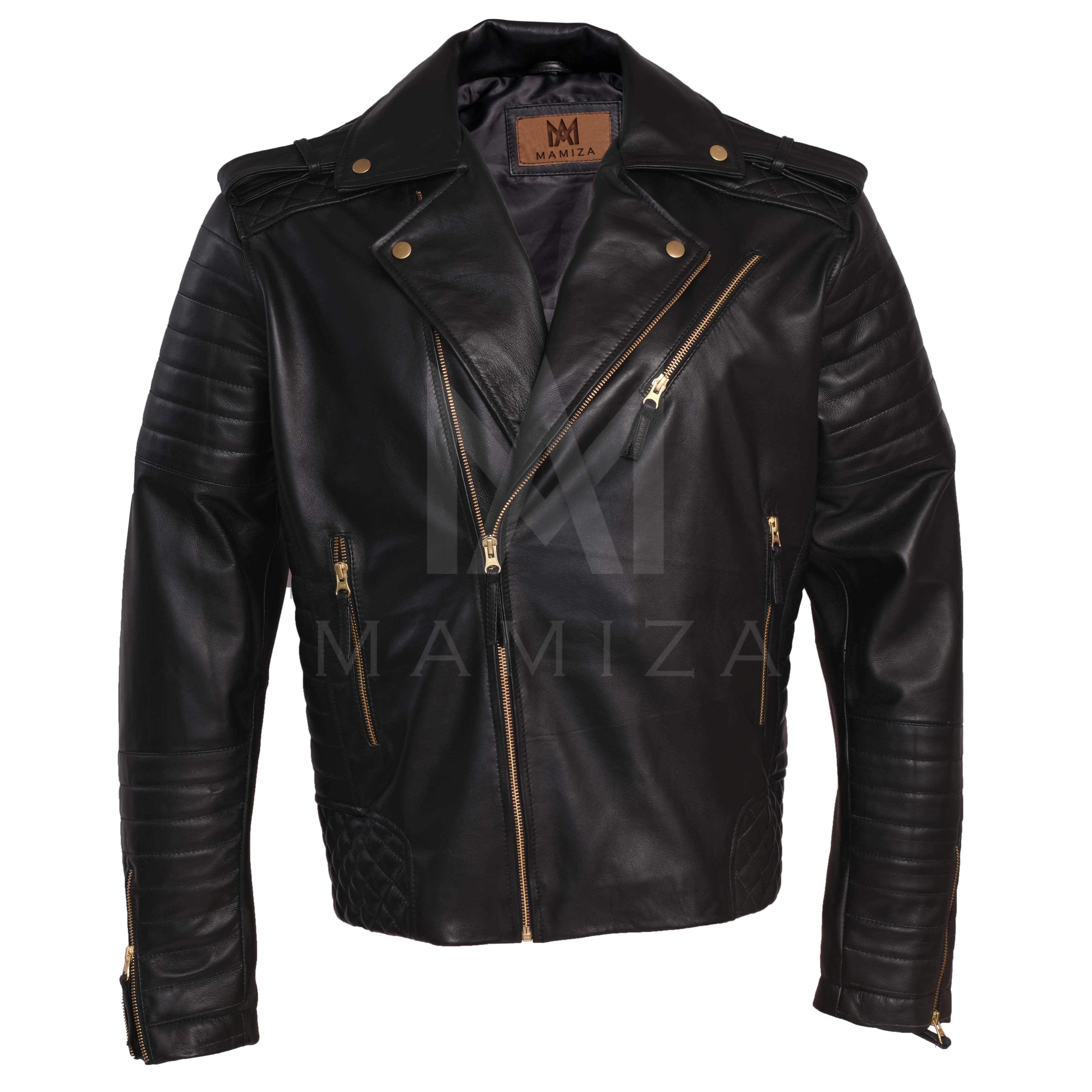 Upgrade your wardrobe today with the Men's Black Leather Biker Jacket and make a bold statement wherever you go!